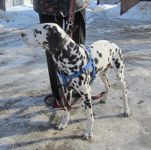 Сегодня в Валенту подбросили кобеля далматина. Достаточно управляемый. По зубам возраст средний. Спокойный, уверенный. Вчера звонили, мол нашли. Сегодня обнаружился в будке. Был,видимо, с вечера. Замерз. Эти ... на собаку намордник нацепили. Хорошо, хоть, губы не отморозил.
