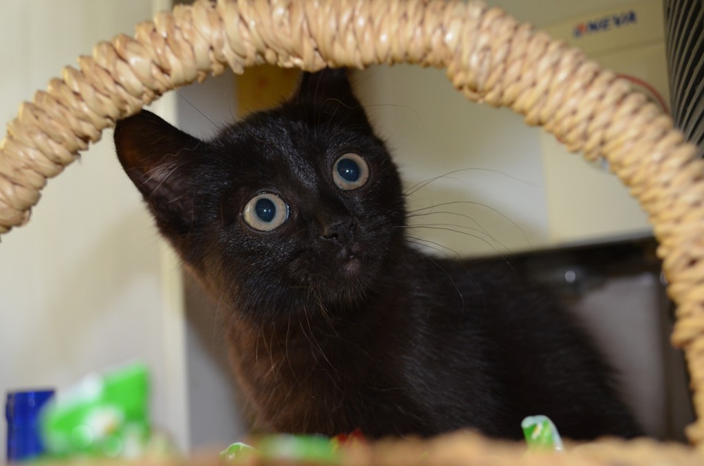 Отдам маленького котенка двух месяцев. Черненькое маленькое чудо оказалось в приюте, из которого его сразу же забрали во временный дом. У котенка очень интересный окрас, малыш черный с оттенком коричневого, с большими, вечно удивленными глазами. Очень ласковый, требовательный к внимаю, только попробуйте его не погладить, а если возьмете на ручки, замурлыкает)) К лоточку приучен, кушает все, очень игривый, будет рад любой игрушке,с радостью поганяет ее, А как он любит людей, готов хоть сутками мурлыкать на коленях не слезая! Объязательное условие для тех, кто решит взять, это кастрация, так как у мальчишки есть небольшая грыжа, которая не мешает ему жить, и может быть удалена только во время кастрации, раньше ветеринар не разрешил, но и на здоровье она никак не влияет. 8-904-039-31-00