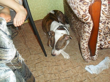 между прочим боязливая и послушная девочка умеет постоять за себя. сегодня повела ее во двор - знакомить со своей сворой. ну Акбару пофиг, понюхал и ушел, амиру на всякий случай посадили на цепь и еще намордник надели. Зато Джери решила ее проверить на "вшивость" наглым наскоком. Питбулька развернулась и рявкнула на Джери. Та отскочила, шерсть дыбом, но больше внаглую не лезла, тока вокруг крутилась.