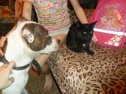 со своими пока не знакомила - Амира рычит через стеклянную дверь на нее. потом займусь объяснением что ее нельзя трогать.