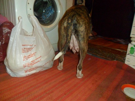 звонок Тани из питомника: "на малеевке около садика привязали к забору собаку, титьки до земли, злая-рычит, местные позвонили в милицию чтоб ее застрелили, спасай!"