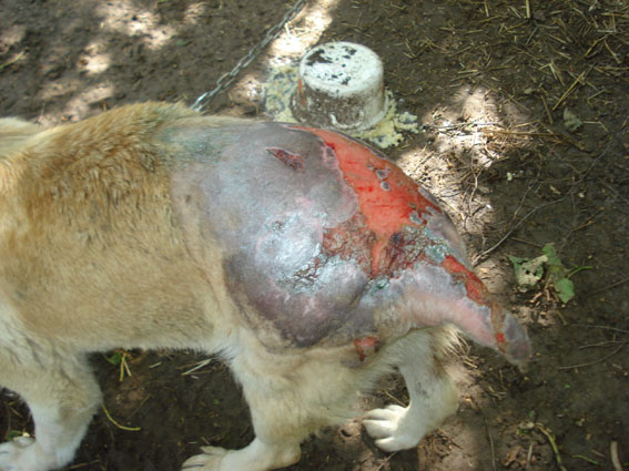 Внешне, (я не спец по собакам), Найда намного активней. Рану каждый день обрабаотывают, то вид, конечно, страшный самой раны.