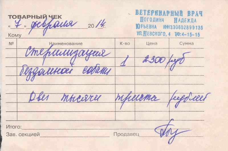 Re: Деньги на стерилизацию