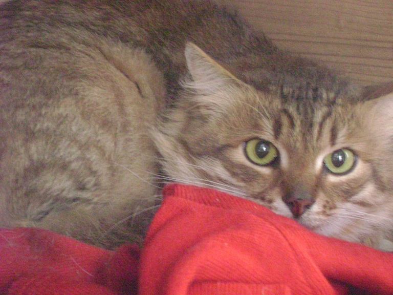 я помню ее.... ее принесли вместе с двумя братьями рыже кремовыми год назад перед новым годом, а она серо-кремового окраса (пестрая). потом даже братьев взяли, отметили новый год и обратно сдали! они сиделаи в терапиии втроем, потом их пересадили в приют. им тогда было около 7-8 месяцев (принесли из какого то автогаража)
