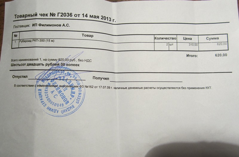 2.Сегодня я заказала пиломатериалы для крыши (привезут сегодня в 15-00) и купила рубероид. Если всё будет нормально, то сегодня вечером начнут монтировать конструкции крыши и стропильную систему.