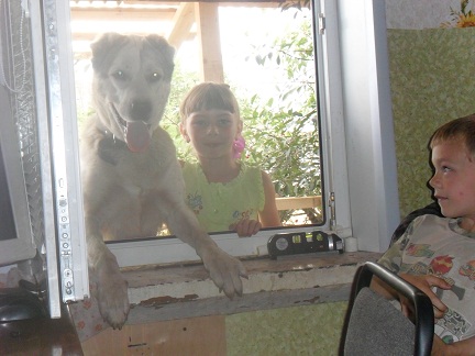 насчет детей - первое время ни на минуту не оставляла не поля зрения. точнее - если они ее гладили - ни отходила ни на шаг. но ничего. после того как они несколько раз по моему научению вынули у нее из пасти куски и поваляли по полу катая и тиская ее а она не проявила ни капли недовольства - успокоилась. ни разу она на них не заворчала.