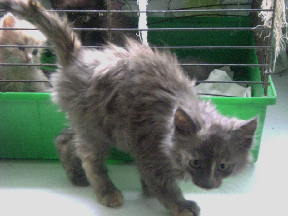 глазки обрабатывают. я видела его была просто в шоке. он такой малыш!!!!это учитывая что уже дома у них сколько времени находится. он коненчо поправился и шерстка стала хорошая но все равно тощий. помещается на ладошке. не дает им спать по утра, в обещм все как положено. а когда бежит на горшок. делает там все свои дела и сидит думает, почему то не уходит...потом попа вся грязная