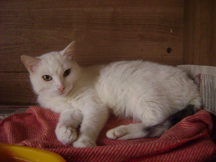 Елена а ты не знаешь где киска, которая после аварии7 зашуганная такая была. окрас - белая с серым (зеленым) лежала вся в зеленке в средней правой клетке в терапии?