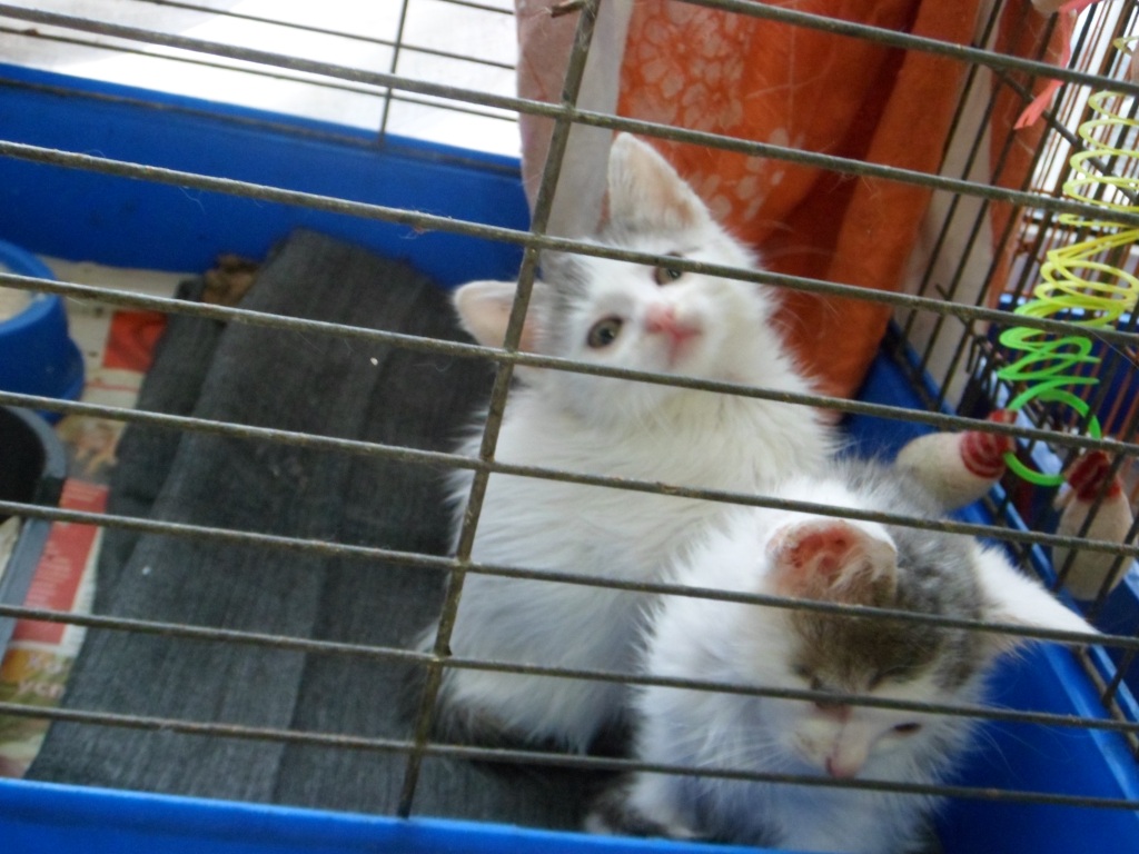 беленькие очень смешные! их 5 одинакового окраса. как близнецы! 2 сидели в этой же клетке где были все 5, 1 сидел в клетке на стационаре, остальные где 2 не знаю. надеюсь забрали
