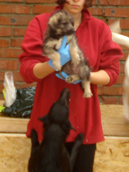 Сегодня была в Валенте, привезла большую кастрюлю еды. Спасибо Алле, вместе разложили, хватило на два вольера и еще Барик с удовольствием каши поел. Из плохого: в вольере со щенками за листами ДСП умер щенок :cry: остальные на нем лежали, видимо ничего не понимая(((((( Щенки вялые, жалко до слез. Другая черненькая собачка сидит дрожит как осиновый лист, может новенькая, то ли болеет, то ли от страха.