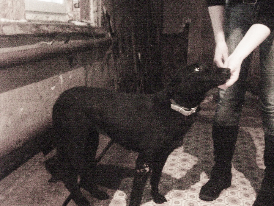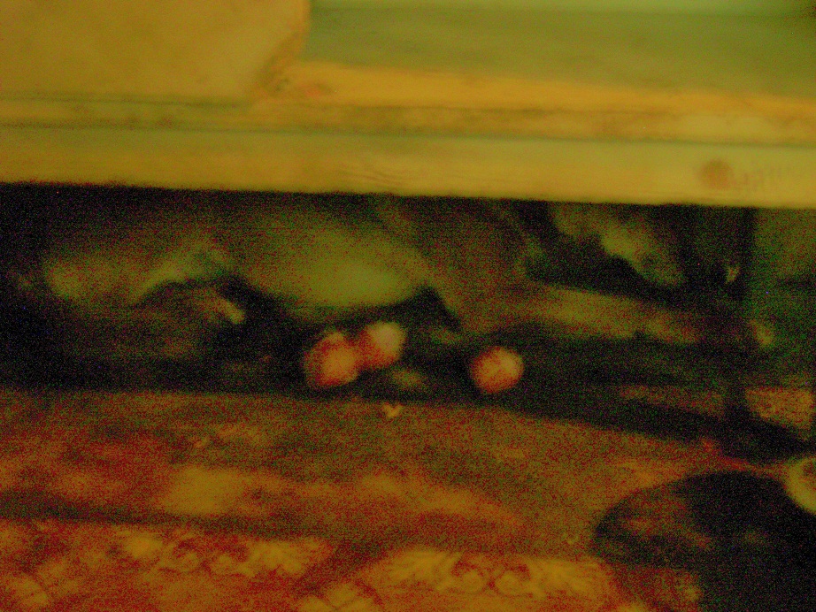 Вторая собака, фото не четкое, тк она дикая и залезла под стелаж в темном корридоре.