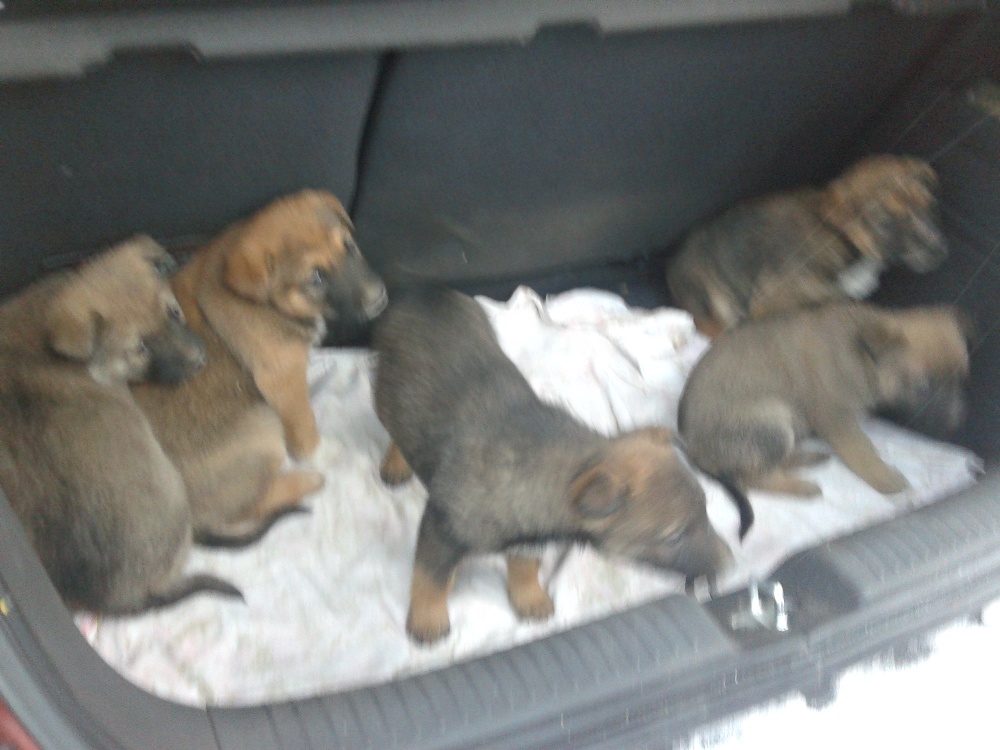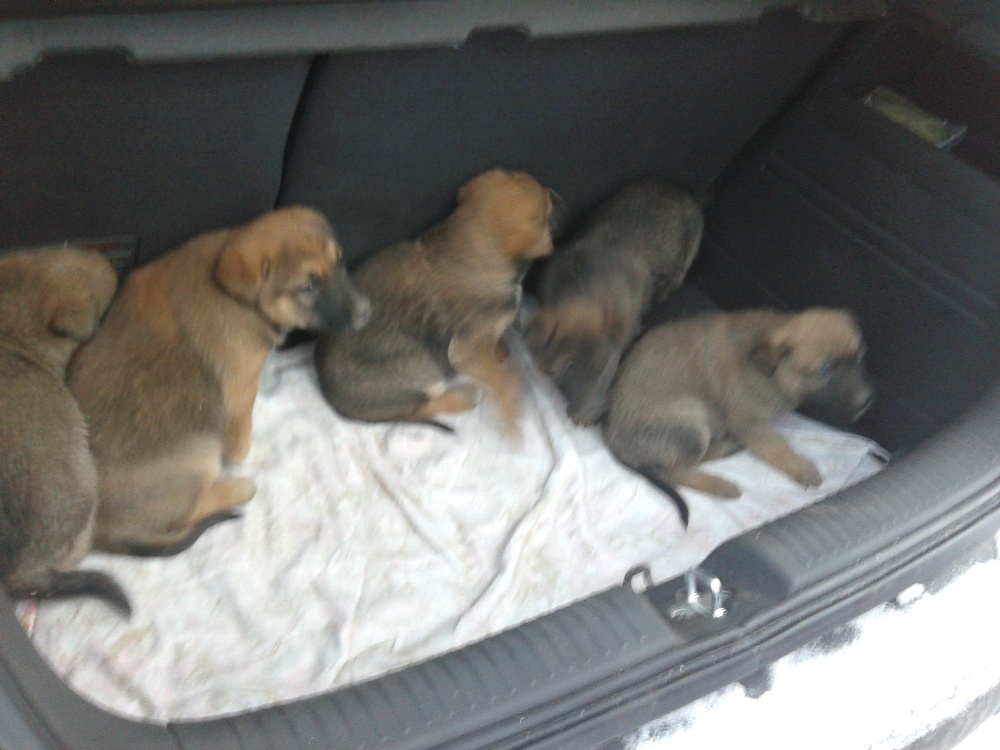 В пятницу (15.02.2013) с завода ЗИД (до сих пор мне не понятно кто их туда подбросил, как и за чем…) были перевезены 5 щенков (недельные) к Наташе (она сказала, что без проблем их выкормит).