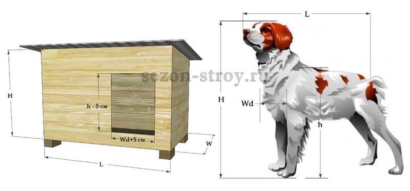 в инете видела размеры собаки и от них размер будки