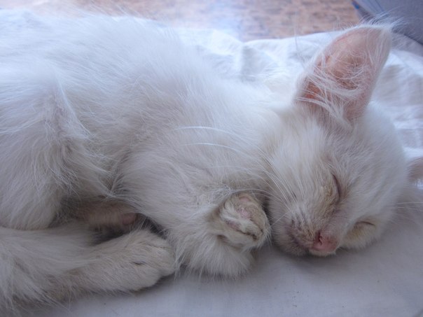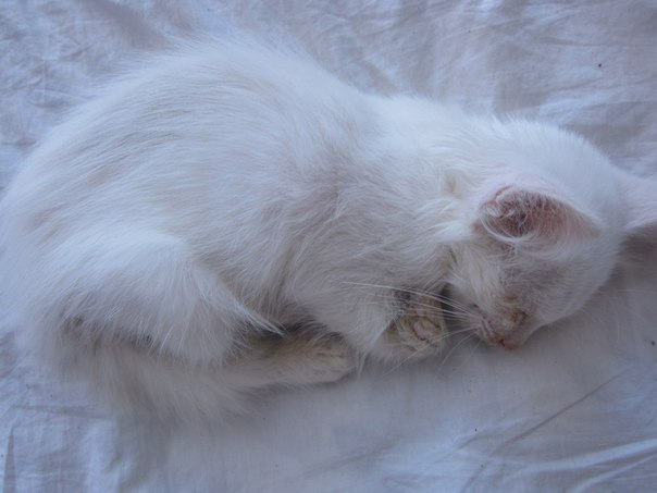 Возраст около 2 месяцев, состояние котенка не очень хорошее, все время ложиться спать