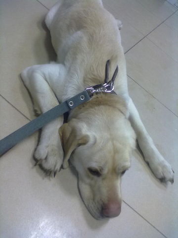 "г. Ковров, по рынку "Крупянщик" бегает молодой кобель лаборадора, палевого окраса, в черном ошейнике. Очень добрый и контактный мальчик".