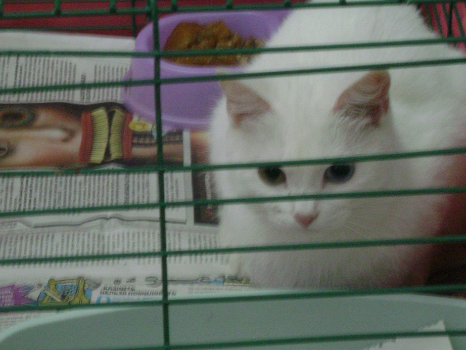Сегодня на стационар (карантин перед отправкой к ФЛО) из Атланта переехали белая кошка с разными глазами Юля и "майский кот"(назвали Май). Договорилась за 100 р. в день( корм и наполнитель наш). Наполнитель и две банки Ночного охотника купила в Атланте. Завтра привезу еще корм и оплачу за стационар(сегодня не было чистых бланков у ЕВ)