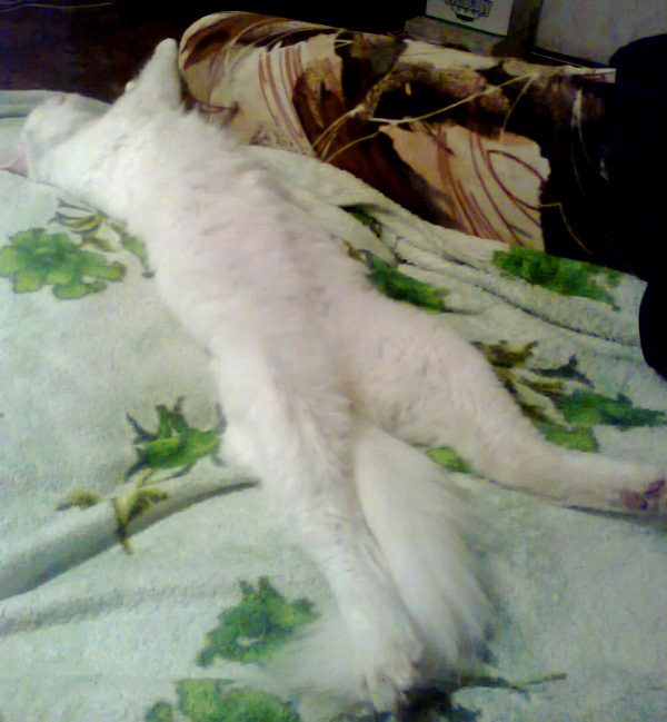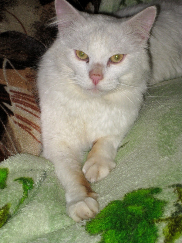 Голос подает редко и не громко. В основном когда есть хочет или когда дверь просит открыть (в комнату или кухню например).