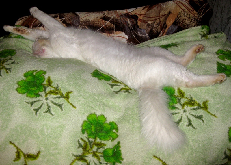 Кас уже стал более общительным, играет! Маша играла с ним бумажным бантиком на ниточке. Бантик в клочья