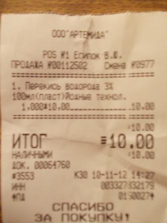 - перекись водорода - 10 р.
