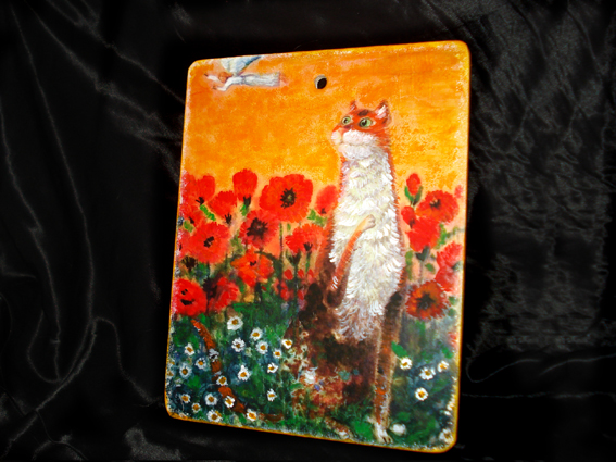 Деревянная декоративная доска "Кот и ангел" . Размер 20х26. Цена 400 рублей
