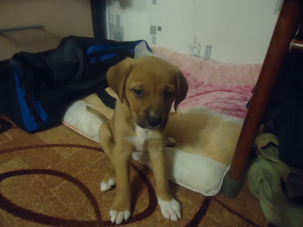 В общем история такая- Олег ходил в лес(охотился) и нашел собаку породы Родезийский Риджбек, сука 6-8 лет со сломаной лапой, в ухе клеймо, Олег пытался найти хозяев, но не получилось, в питомнике откуда она родом отказались ее забирать, он оставил ее себе, вылечил, оказалось что она была беременная, родилось 7 щенят(метисы) 1 мальчик и 6 девочек, сейчас он их раздает (одну девочку забрали сегодня Лена с мужем).