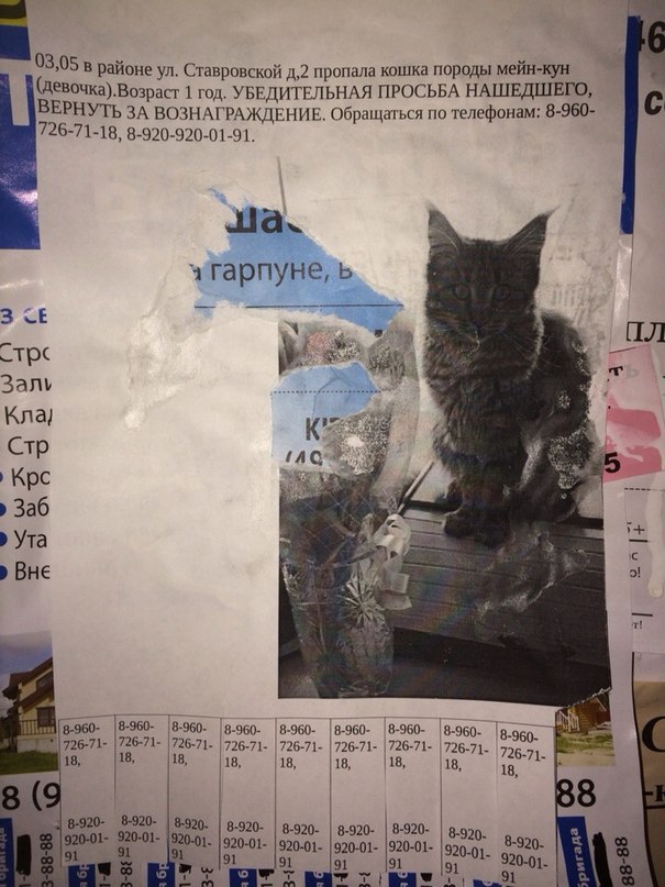 Зря, конечно, хозяева указали породу. кто не знаком с этими кошками, тот не поймет, если встретит что это именно мейнкун(тем более кошка, да и у котов размеры стандартные их не такие, как обычно привыкли видеть обыватели на картинках в интернете). Но вот алчные люди могут объявится однозначно, когда текст прочитают... тем более кошка