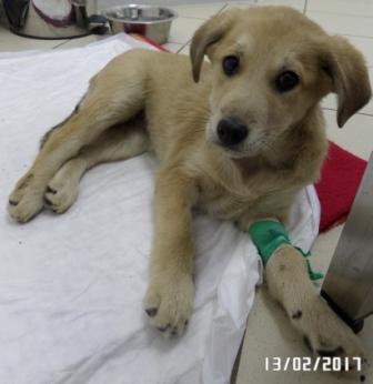 12.02.2017г. к воротам подкинули коробку с щенком (сука). У щенка перелом обеих задних лап. Правая - перелом в области коленной чашечки, левая лапа - перелом в области бедренной кости и коленной чашечки. Ей необходима операция! Стоимость операции 10500р. Необходимую сумму нужно собрать в течении недели, щенок не может ходить и жить полноценной жизнью...