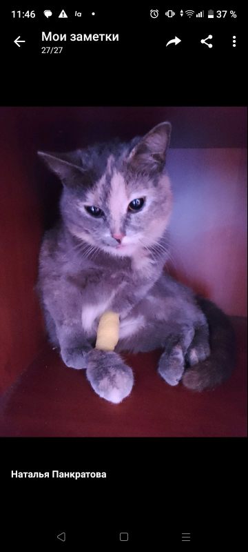 В данный момент кошка находится у меня. В данный момент необходима операция на челюсти. Павел Александрович советует не затягивать. прошу финансовой поддержки. Корм, поездки в клинику беру на себя. Сегодня были на повторном приеме. Состояние улучшилось, начала кушать влажный корм. Кошка молодая. швы от стерилизации не нашли. Также продолжаю искать прежних хозяев (возможно, был самовыгул, т.к. частный сектор)