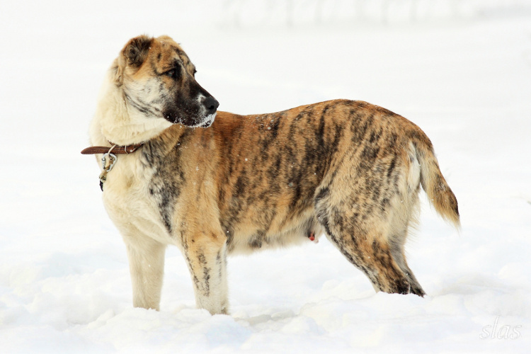 Ляля- среднего размера, хорошо сложенная плотненькая алабайка тигрового окраса. У нее блестящая шерсть и густой подшерсток, а также удивительно умные и хитрющие глаза.
