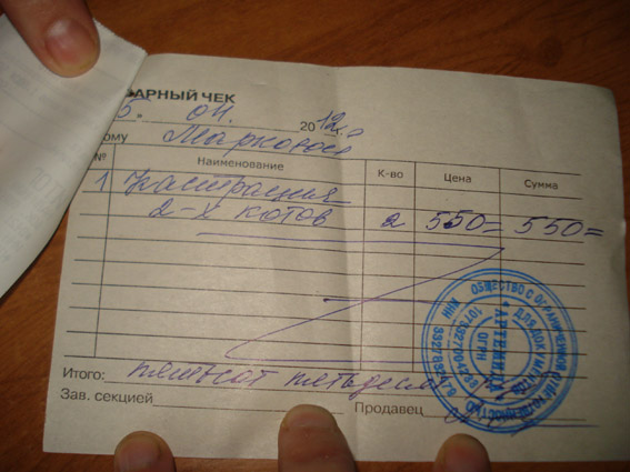50 рублей добавила с денег сайта (т.к. на кастрацию ранее привозила только 500 рублей).