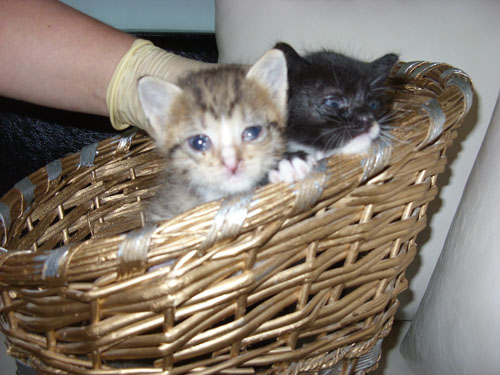 21.06.12 в маникюрный салон в г. Коврове были подброшены 2 маленьких котенка (девочка и мальчик). Они только вчера стали кушать из блюдца.. Котята очень симпатичные, в приют сдать возможности нет - в Валенте взять не могут - переполнен. В Коврове приют отсутствует.Отдам в хорошие руки (через 2 дня я уезжаю, заботиться о них будет некому). Еще у них слезятся глазки, лечу сама.
