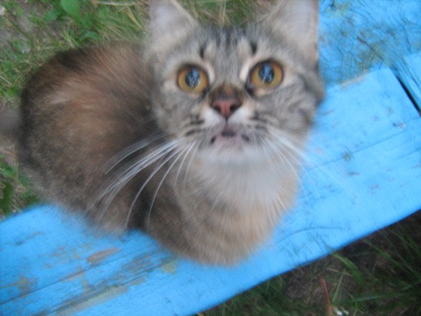 Необычной красоты!!! Шерсть длинная, но она такая худющая!!! Вся в клещах! Конечно фото не передает всей её красоты.. глазища огромные!!