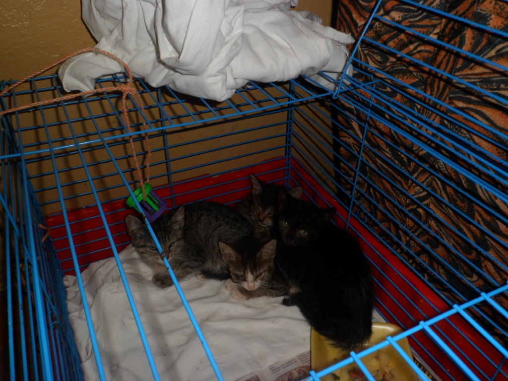 Светлана ( которая кормит кошек в подъезде - 2 из них я стерилизовала в теме - viewtopic.php?f=36&t=3456) подобрала 4 уличных котят! всем по 2 месяца (но разного размера). все очень больные! у всех хламидиоз, блохи, глисты и лишай. У одного котенка панафтольмит (глаз придется удалять), у второго (пушистая полосатая девочка) - еще к хламидиозу ринотрахеит,осложнения на легкие, у самого большенького котенка порок сердца. Котята кушают, есть шанс им выжить и вылечить. Я возила котят к Е.В. зуевой в субботу. она написала назначения. ветлана посадила котят в мою клетку. забрала к себе. Лечить будет, все назначения делать. Нужны финансы для покупки лекартв. только за клинический осмотр, соскоб и вакдерм ушло 1500 рублей.