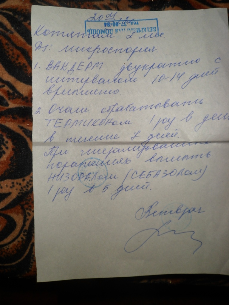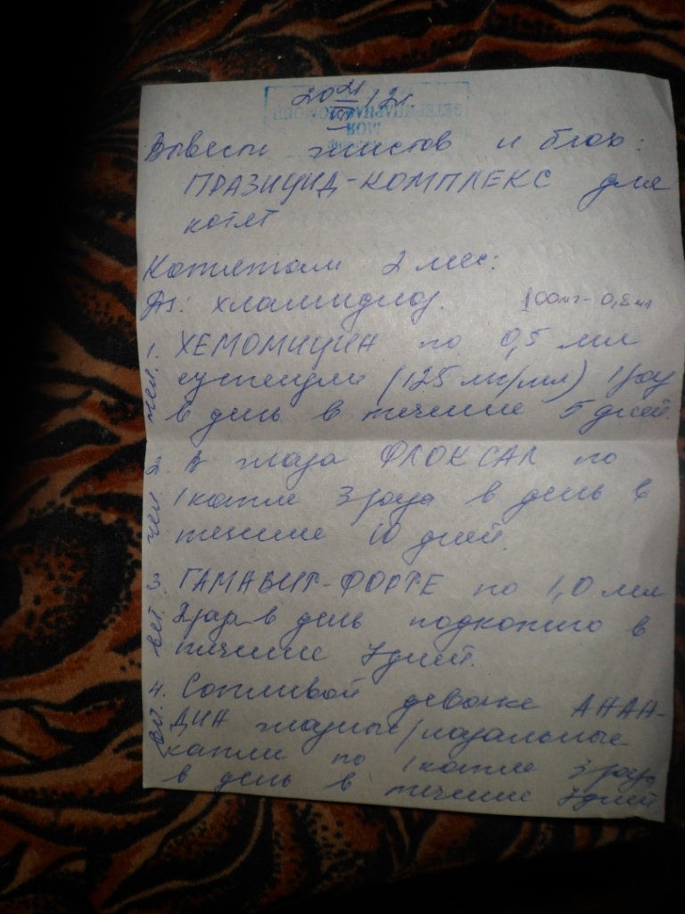 нужно купить термикон-мазь и празицид-коомплекс для котят (от блох и глист он сразу идет) - я пока не нашла это лекарство