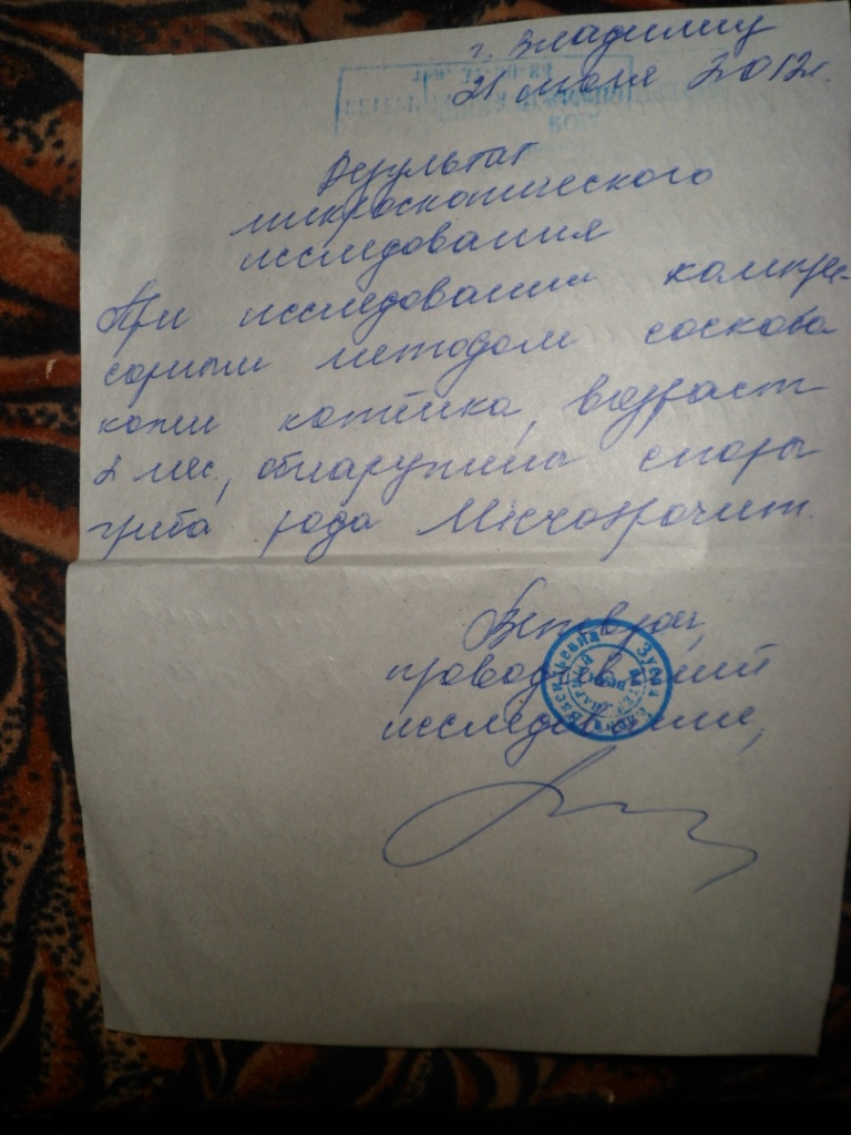 1509р.-осмотр, соскобы и вакдерм в клинике Е.В. Зуевой (из них 1000р. - от Любовь Борисовны с акции (эти деньги адвались на стерилизацию кошек . которых кормит светлана в общежитии, но пришлось потратить на котят) + 509 от денег Ольги)