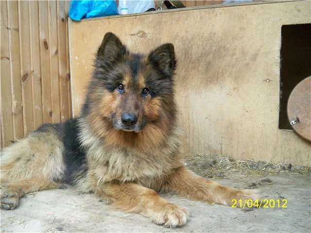 Удивительной красоты и достоинства пес, глаза яркие и умные, смотрит в самую душу. Ориентирован на человека, ласковый и послушный. Хорошо ездит в машине, не конфликтует с другими собаками, спокойный, но при этом сильный и подвижный, абсолютно не выглядит на свои года. Крупный, статный, запоминающийся здоровый пес. Забрали из расформированного питомника в Киржаче.