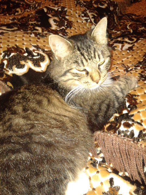 Возможно кот не потерялся и хозяева иногда выпускают его погулять (возникла у меня такая мысль....ведь по сути Ковров...большая деревня).....но кот даже не просится на улицу, к входной двери и близко не подходит...как покушает сразу ложится на диванчик)мурчалка)