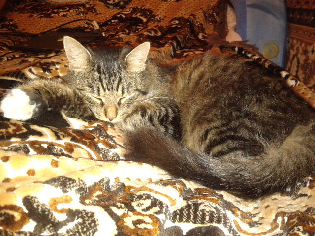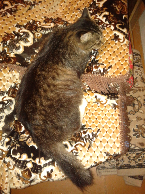 Его нашла моя сестра....а скорее кот ее нашел. Он был весь грязный...но такой ласковый и она взяла его к себе. Кот приучен к лотку и по всей видимости кастрированный....но проблемы со здоровьем у него есть...я так решила потому что он как только попьет воды...сразу идет в туалет...это странно...