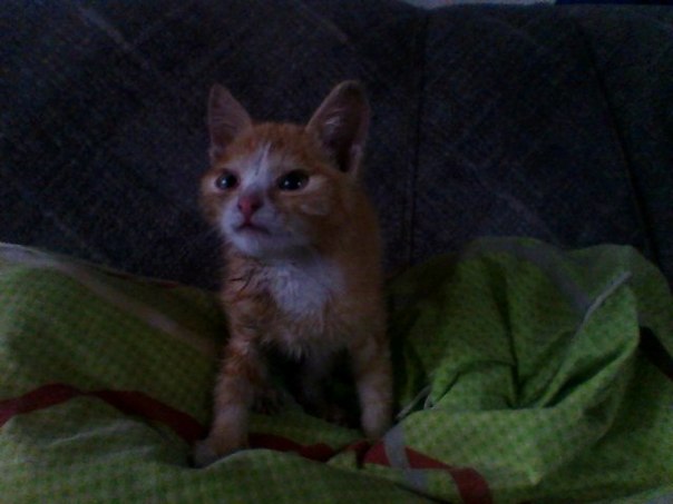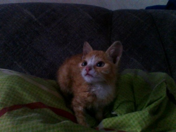 Сегодня муж принес домой рыжего малыша, на вид 1-2 месяца. Он сидел и мок под проливным дождем. Рыжулик ласковый, урчащий комочек. Кушает хорошо. Оставить у себя не можем (есть годовалый кот). Передержу до пятницы, дольше не могу, уезжаю на несколько дней.