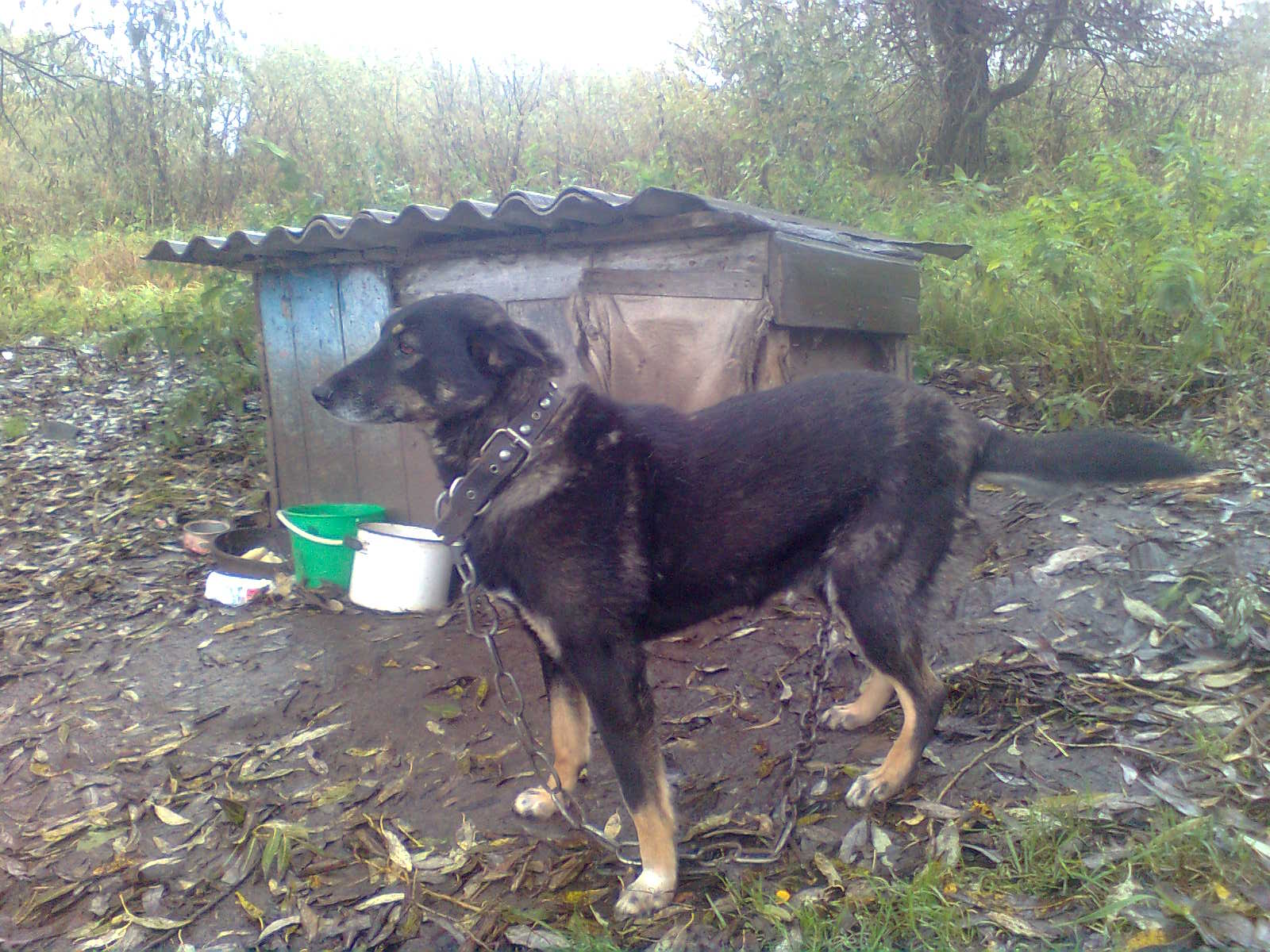 "Очень хорошая собака, к еде не прихотлива, приучена к цепи, живет на улице. Кличка Альма.