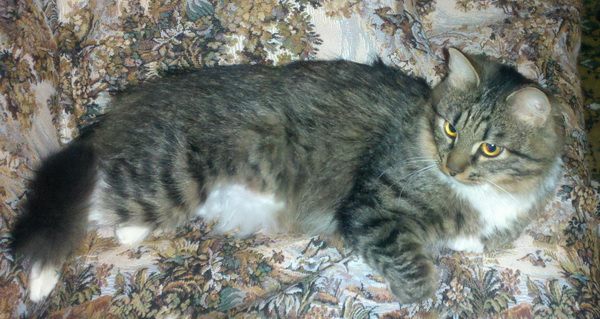 В сентябре 2012 года в районе гостиницы "Заря", напротив детской поликлиники возле нового многоэтажного дама был найден этот молодой кот, полупушистый. Кот явно бывшедомашний, т.к. привередлив в еде (ест только сырое мясо и дорогой влажный корм), лоток понимал сразу. Может быть его ищут бывшие хозяева. Догадалась написать, только когда пропал мой кот, поняла, что кто-то может тоже сильно переживать. Кот пережил за это время очень много: перелом крестца, паховую грыжу, отит правого уха и кальцевирусную инфекцию. Сейчас полностью здоров и кастрирован. Очень игривый и хулиганистый. Отдавать в добрые руки не собираемся, только если найдутся старые хозяева, которые его очень ждут. Это его фото.