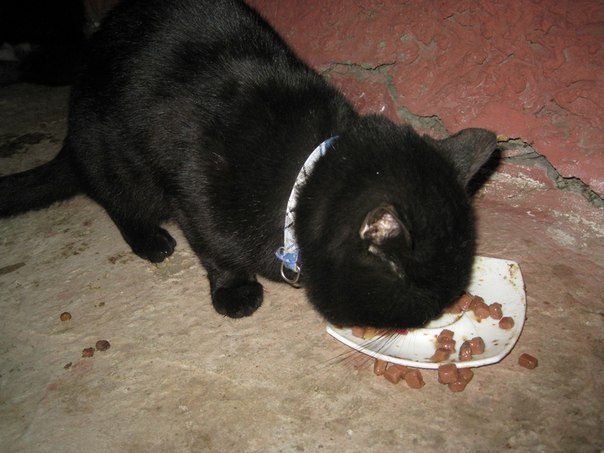 Черный кот появился в Добром около Сириуса, гладкий, ушки чистенькие, небольшое белое пятнышко на груди, с сине-голубым ошейником, истощен, плачет, лезет на руки, видно что бывшедомашний, может быть кто-то ищет!!! https://vk.com/id11080991