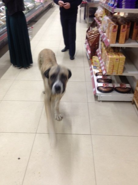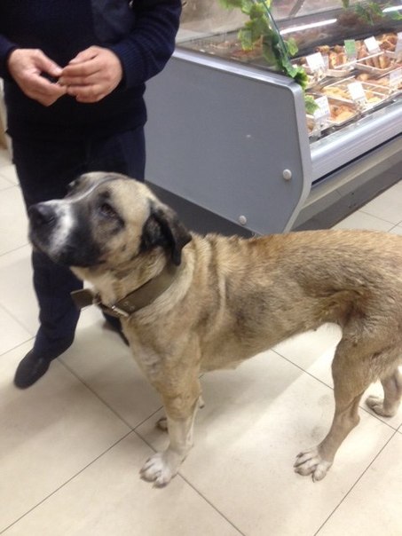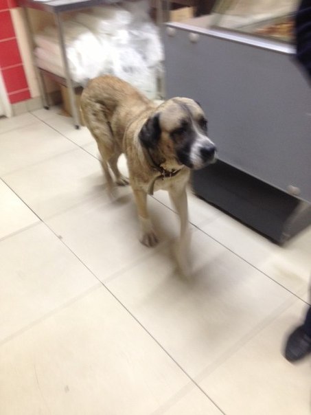 18 марта в 23-00 в магазин "Амби" на Ул. Дзержинского пришла огромная собака, с текстильным ошейником, девочка, породу не знаю, возраст тоже, но не юная, мне показалась рожавшей, спокойная, доверчивая, неухоженная, тощая... Из магазина ее вывели, на улице мужчина пытался покормить ее хлебом-есть не стала. Собака выглядела растерянной, подходила ко всем.. Я не могу ее взять даже на время (у меня две собаки, у одной из них карантин после прививки). Посмотрите фото, может ее ищут или кто-то может ей помочь.
