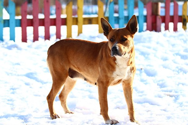 Была домашней собачкой,но по ненадобности или может надоела она ему,хозяин решил от неё избавиться и просто выкинул на улицу.Собака очень умная,выполняет пару не сложных команд,преданна.С детьми очень хорошо ладит.Детки прозвали её Диной,и на это имя она хорошо откликается.