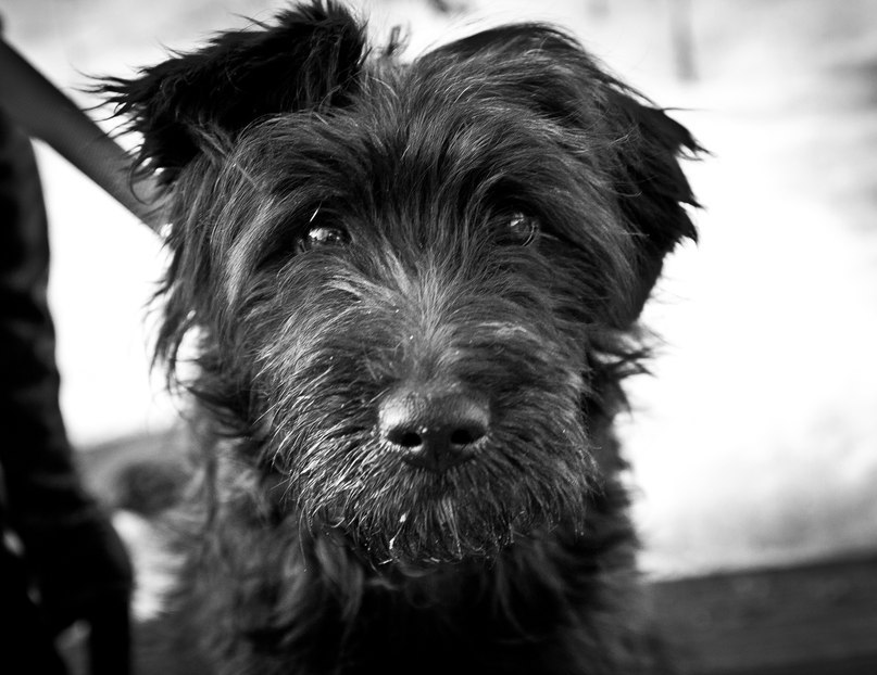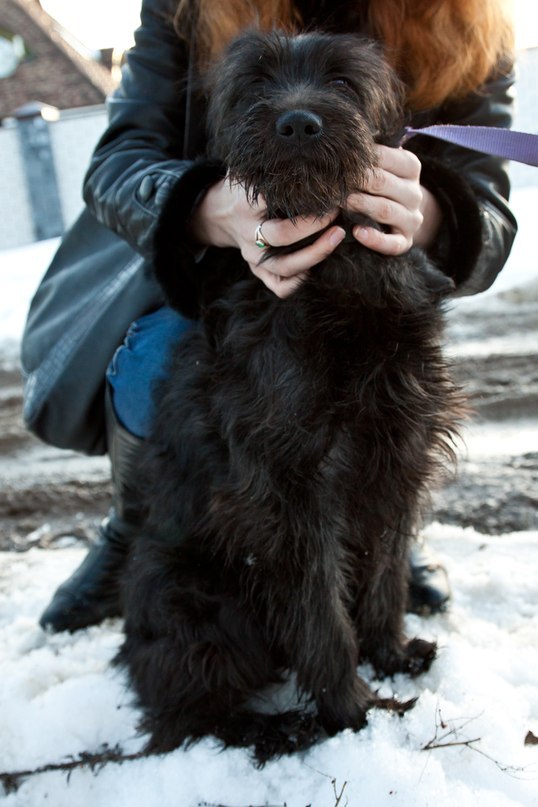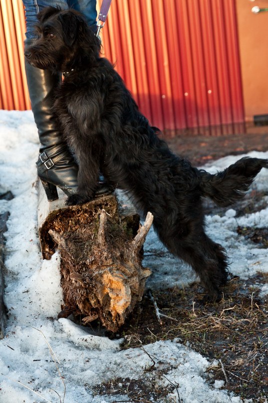 Мне нужно фото рядом с человеком. Очень желательно у бедра человека. Пока: может не ризеншнауцера, а миттельшнауцера метис. Похож больше. Я попрошу заглянуть Лену (Басару). Она спец именно в шнауцерах.