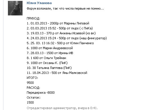 Финансовый отчет по ссылке http://vk.com/topic-51183022_28405443