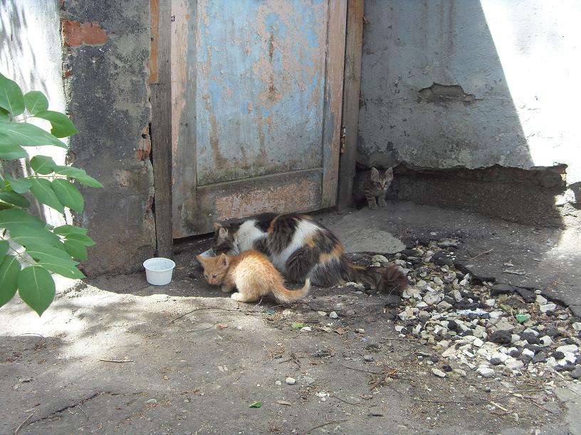 Сегодня в оном из дворов нашла трёх котят. Немного диковаты, но к еде подходят, поймать реально. Проблемы с глазками. Котята очень симпатичные, легко пристроятся. Может кто сможет взять на время, или хотябы помогать подкармливать, это остановка Красноармейская. Может у кого остались какие капельки для глаз. Мамаша-кошка опять беременная.