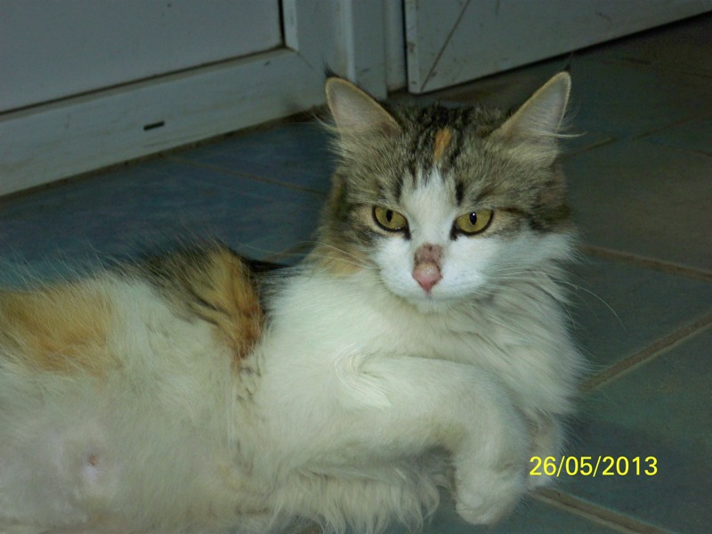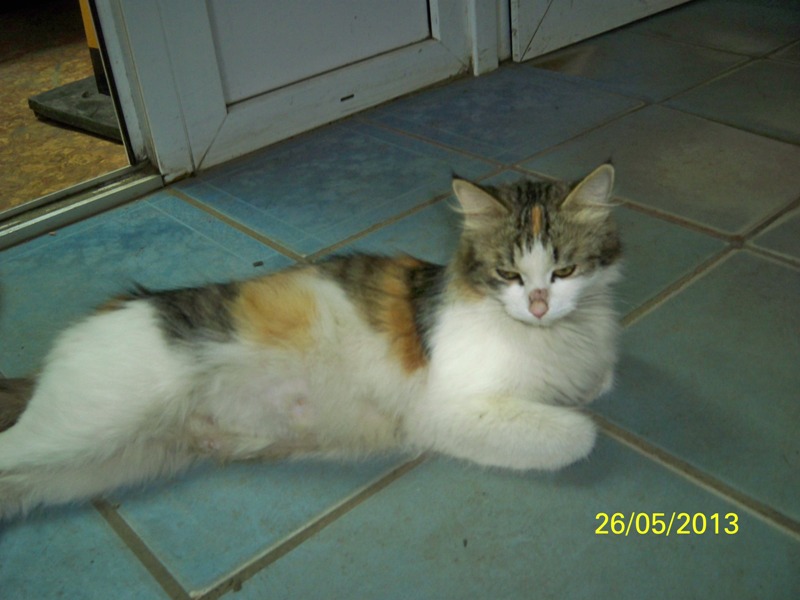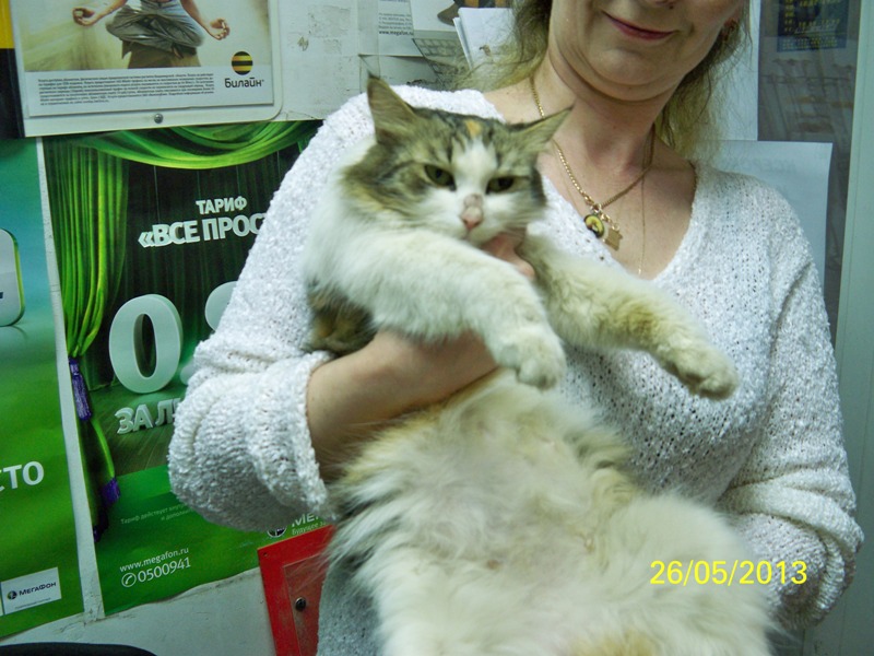 На ее работе приблудилась кошка совершенно домашняя, 3-х цветная, на ушах небольшие кисточки. Некорые работники магазина кошку собираются изничтожить и это не просто угрозы.