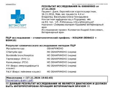 Даня несколько дней откпз от еды. Ездили на обследование в Вет эксперт.