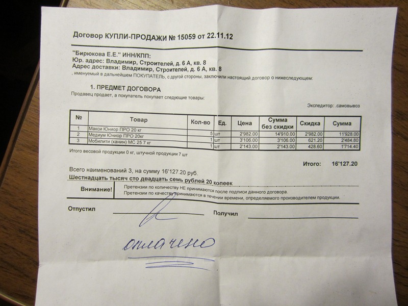 Выставляю чек на все купленные корма (стафф Патрик+шарпей Шарик; кане-корсо, шенки-метисы эстонской гончей из этой темы; собаки с переломами таза). Все собаки находятся в Валенте. Корм для щенков идёт отдельной графой.